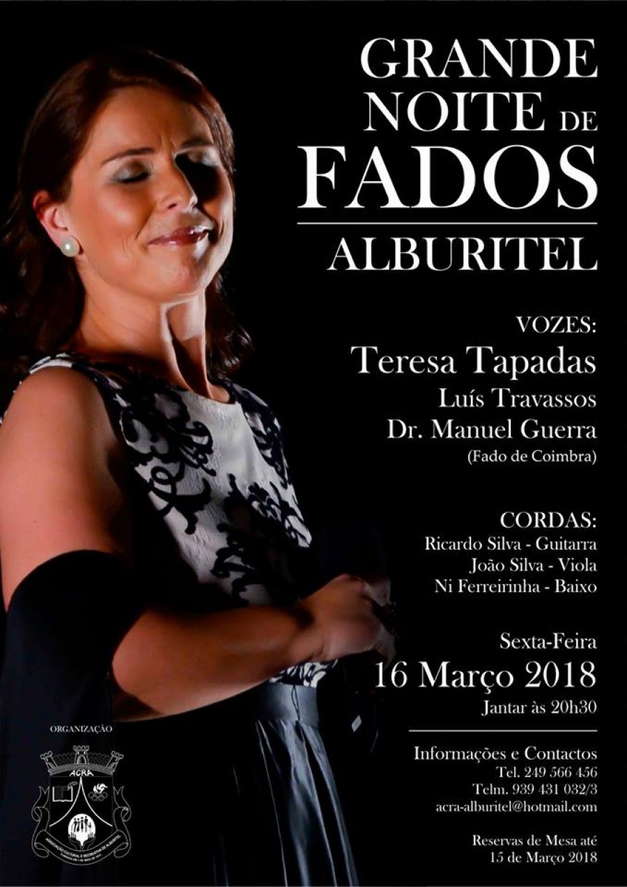 A ACRA promoveu uma grande noite de fados, com a presença da impotente voz da fadista Teresa Tapadas que actuou pela terceira vez em Alburtitel.